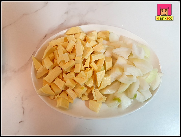 ▼ 짜장밥 만들기에 들어가는 당근, 고구마, 새송이버섯, 호박, 양파는 먹기 좋은 사이즈로 잘라 준비해 주시해 주세요.
