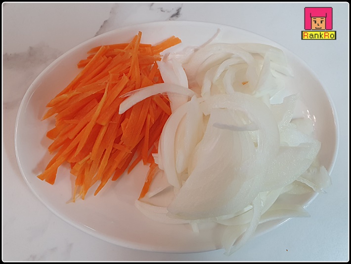 ▼ 미역 줄거리 볶음에 들어가는 양파와 당근도 채 썰어 준비해 주세요.
