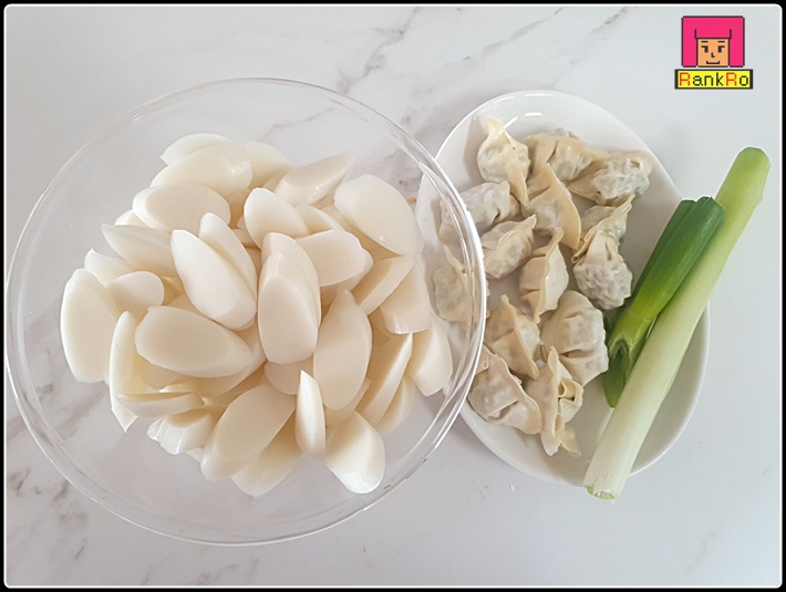 ▼ 떡국에 들어가는 재료를 준비합니다. 떡국떡은 2~3인분, 냉동만두(원하는 만큼), 대파를 준비했습니다. 취향에 따라 만두는 넣으시면 됩니다. 만두가 들어가면 국물 맛도 풍부해지면도 든든하게 드실 수 있습니다.