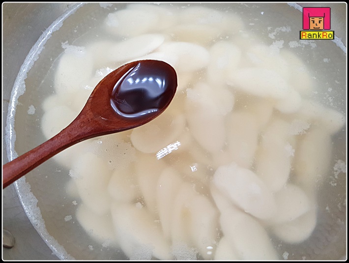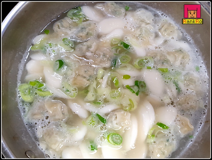 ▼ 마지막으로 떡이 수면 위로 올라오면 대파를 넣고 기호에 맞게 부족한 간은 소금으로 해 주시면 됩니다. 입맛에 따라 후추를 살짝 넣어 주셔도 좋아요.