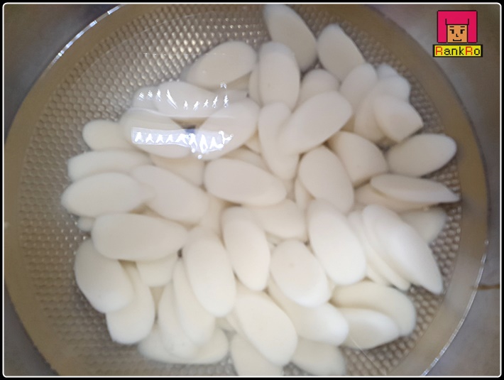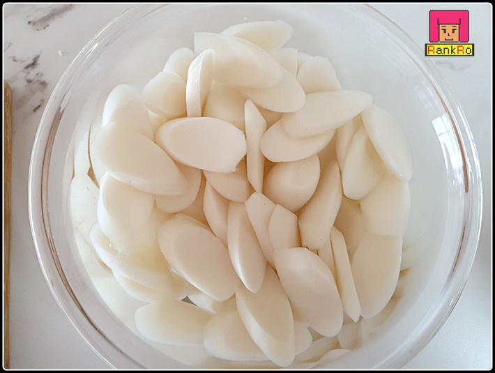 ▼ 떡국에 들어가는 떡은 찬물에 담가 불려줍니다. 냉장고에 있던 떡국떡은 살짝 헹궈내 주시면 되며, 냉동고에 있던 떡국떡은 찬물에 불려 주시면 됩니다. 오랫동안 냉동고에 보관돼있던 떡은 찬물에 담가놓으면 떡이 갈라질 수 있습니다.