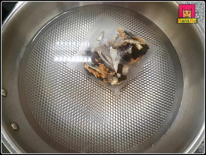 ▼ 멸치육수는 멸치 다시육수팩을 이용해 만들어 줍니다. 일반 멸치와 다시마를 이용해 육수를 내주신다면 멸치 내장을 제거하시고 팬에 비린내가 나지 않도록 볶아서 사용하시면 됩니다. 물이 끓어오르면 중불로 낮춘 뒤 8~10분 정도 끓여주세요. (육수는 대략 10분 기준으로 만들어 주시면 됩니다. )