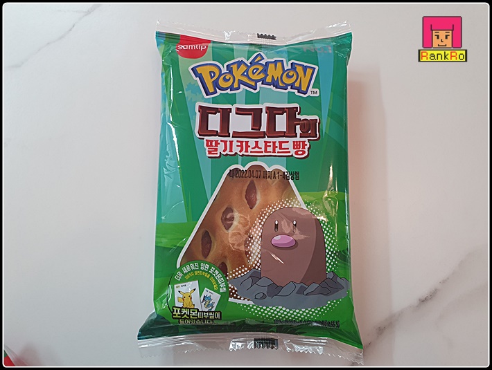 ▼ 초록 초록한 포장지에 귀여운 디그다의 캐릭터가 그려져 있는 디그다의 딸기 카스타드 빵