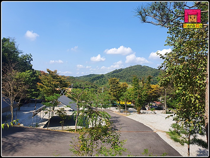 ▼ 조금 일찍 도착했더니 다른팀 퇴실 후 파쇄석 정리를 하신다고 해서 관리동 맞은편에 잠시 앉아 캠핑장을 한번 둘러보았습니다. 정갈하게 다듬어진 사이트와 조경이 참 아름답게 꾸며져 있어 조용하고 깨끗한 캠핑장이구나 하는 생각이 들었네요~