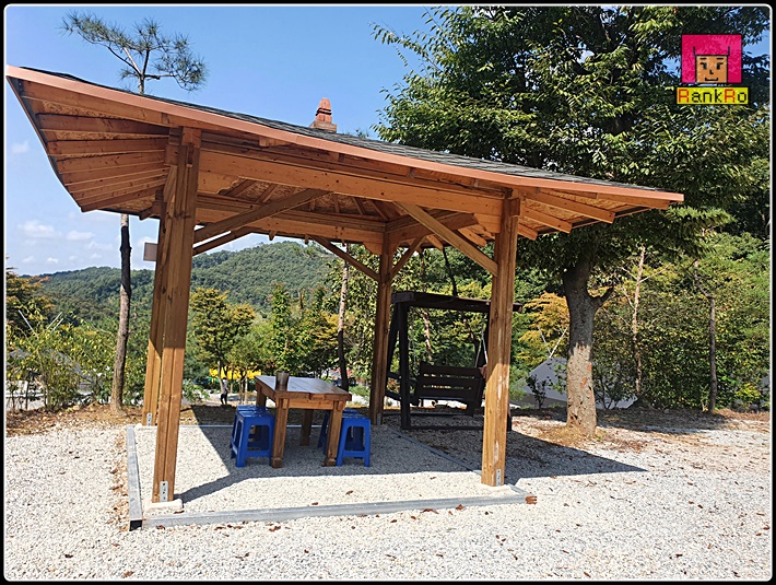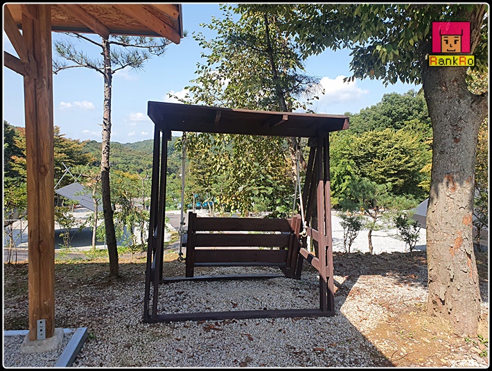 ▼ 아미캠핑장 맨 위쪽에 자리 잡고 있는 정자와 흔들의자도 있어 아이들이 자주 오르락 내리락하며 즐겁게 보낼 수 있는 곳이었어요~