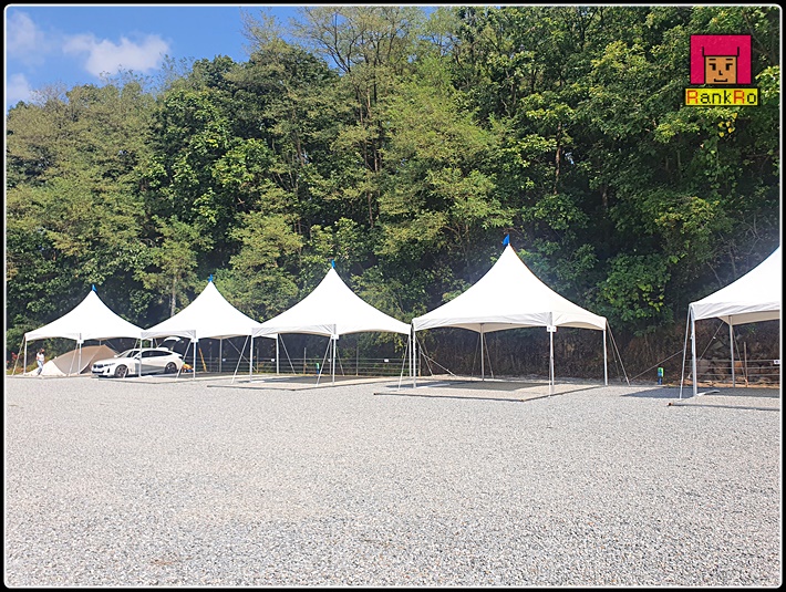 ▼관리동과 가까운 캠핑존(몽골) 구역입니다. 몽골 존 1~5까지는 타프로 되어있으며 나머지는 일반 파쇄석 자리입니다. 몽골텐트와 일반 사이트는 마주 보고 있지만 간격이 넓어 좋은 것 같아요~