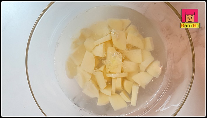 ▼ 잘라놓은 감자는 물에 담가 전분기를 빼 주세요.