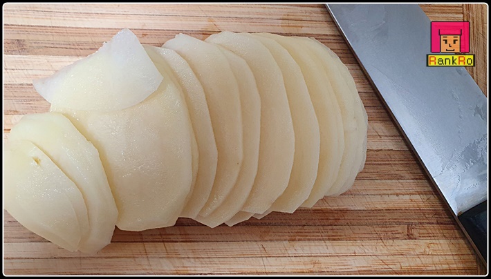 ▼ 감자 2개를 사용해서 슬라이스 해 주세요. 너무 두껍거나 얇지 않게 적당한 두께로 잘라 주세요.