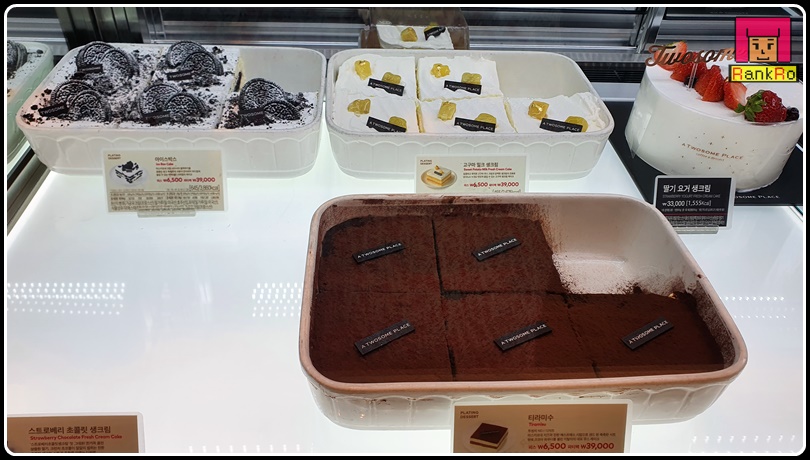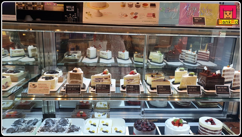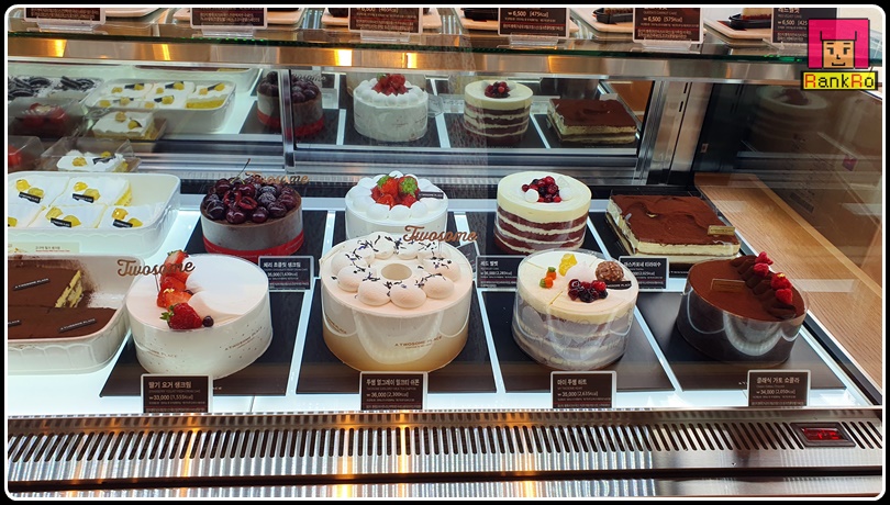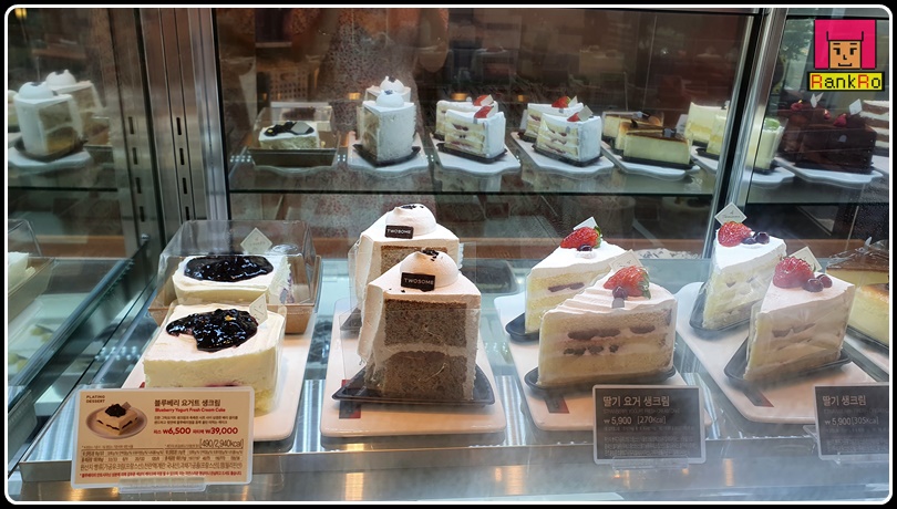 ▼ 투썸플레이스빙수를 기다리는 동안 쇼케이스 안 케이크와 베이커리 디저트도 구경해 보았어요. 케이크 맛집으로 다양한 투썸플레이스 케이크... 홀케이크와 조각 케이크까지 눈으로만 보아도 행복해지는 비주얼의 케이크~~♪ 다양한 제품들이 깔끔하게 진열되어 있네요