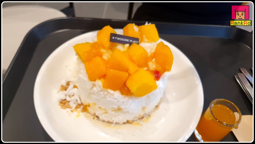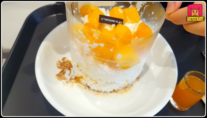 ▼ 투썸플레이스메뉴로 케이크 빙수가 신메뉴로 새로 나왔어요. 블루베리 케이크 빙수, 티라미수 케이크 빙수, 애플망고 케이크 빙수, 투썸플레이스 케이크 빙수 3종류로 가격은 13500원으로 동일해요. 기본 오리지널 팥빙수는 케이크 빙수처럼 나오는 것은 아니고 일반적인 팥빙수로 인절미가 올란 간 빙수로 10500원에 판매하고 있어요. 저는 아이들이 선택한 애플망고 투썸 케이크 빙수로 주문했습니다.