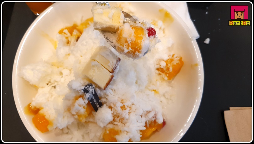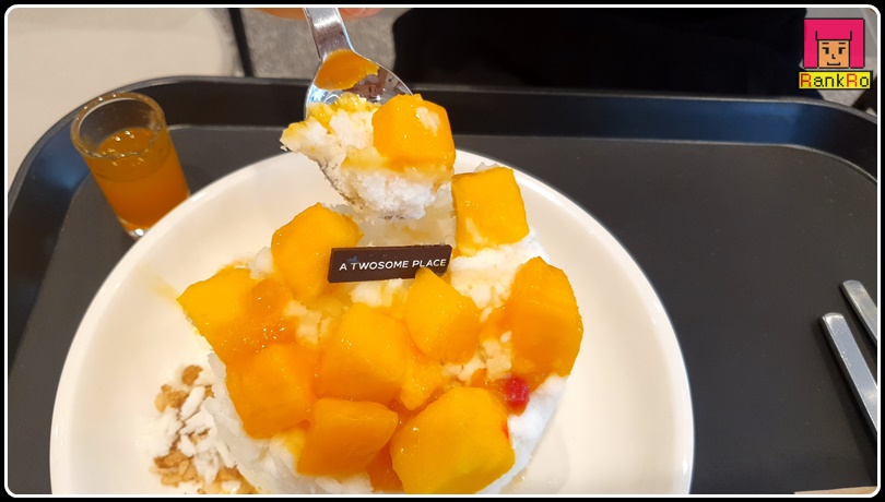 ▼ 투썸플레이스 빙수로 전체적으로 맛이 좋았습니다. 저는 투썸 치즈케이크를 좋아해 투썸빙수에 꾸덕한 치즈케이크가 크게 들어가 일반 빙수보다는 식감도 살아 시원하면서 달콤하게 먹기 좋은 투썸 빙수였습니다. 애플망고와 치즈케이크 조합이 잘 어우러져서 맛이 없을 수가 없는 맛이었습니다. 다음에는 인절미가 크게 들어가 있는 투썸 팥빙수를 먹어봐야겠어요.