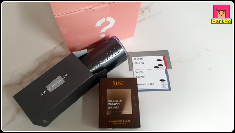 ▼ 처음 구매해 본 미스터리 박스~두근두근~ 텀블러와 드립 커피, 커피 쿠폰 4장이 들어 있네요. 만원의 행복~♪ 필요한 텀블러와 커피 쿠폰까지~구성이 참 만족스러운 미스터리 박스였습니다.