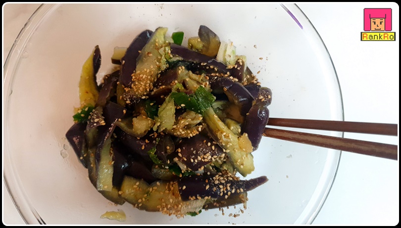 ▼ 조물조물 양념이 배도록 무쳐주신 다음 통깨나 깨소금을 뿌려 마무리해 주세요. 싱겁다면 기호에 맞게 소금이나 국간장을 추가해 주시면 맛있는 가지무침이 됩니다.