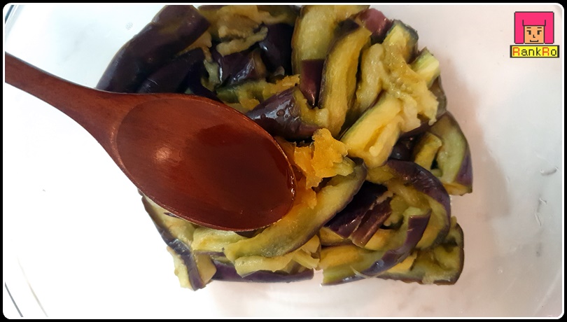 ▼ 가지찜에 양념을 해 주세요. 국 잔장 1큰술, 들기름 1큰술 or참기름 1큰술, 다진 마늘 1/2큰술, 어간장1큰술(액젓 1큰술), 깨소금 1큰술, 대파 1/3개