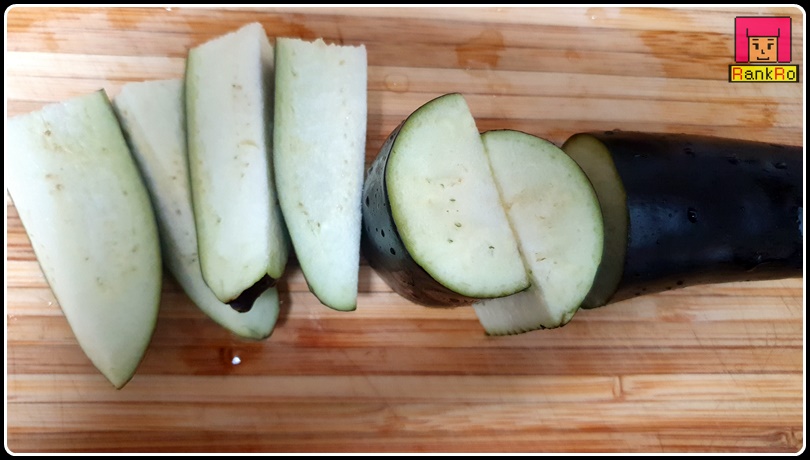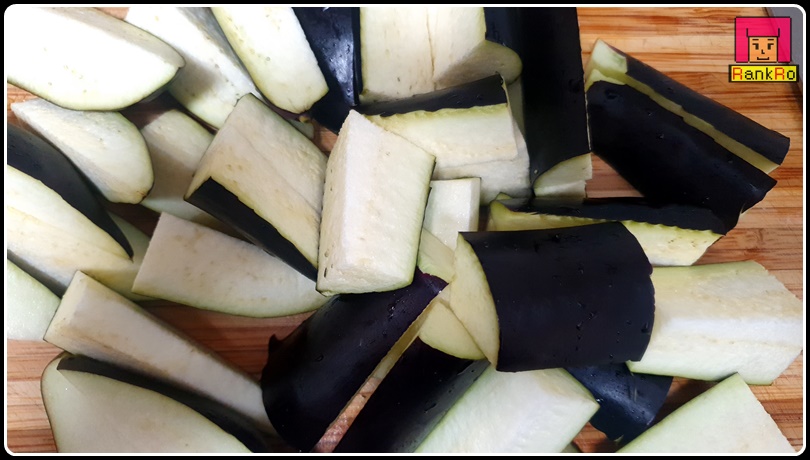 ▼ 가지나물무침에 들어가는 가지는 먹기 좋은 사이즈로 잘라 준비할게요. 가지는 3등분을 해 주세요