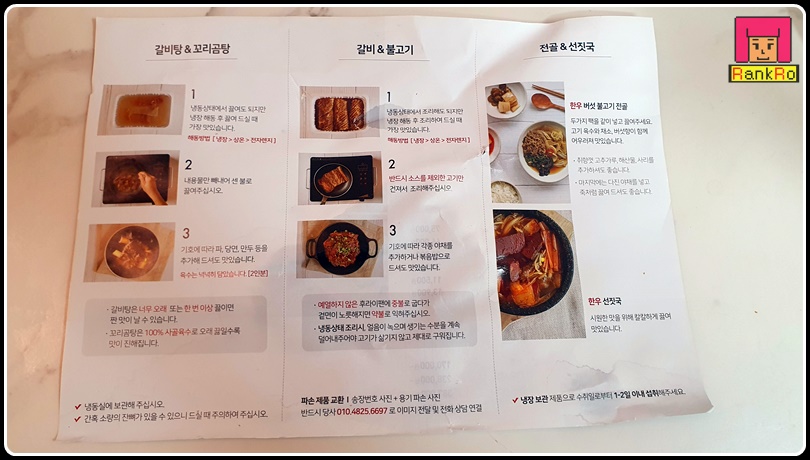 ▼ 끓이는 방법으로 사미헌 갈비탕과 같이 온 안내지에는 갈비탕을 너무 오래 끓이거나 몇 번 끓이게 되면 짠맛이 많이 날 수 있으니 너무 오래 끓이지 않는 것이 좋으며, 간혹 소량의 잔뼈가 있을 수 있으니 드실 때 주의하라는 내용이 있네요.