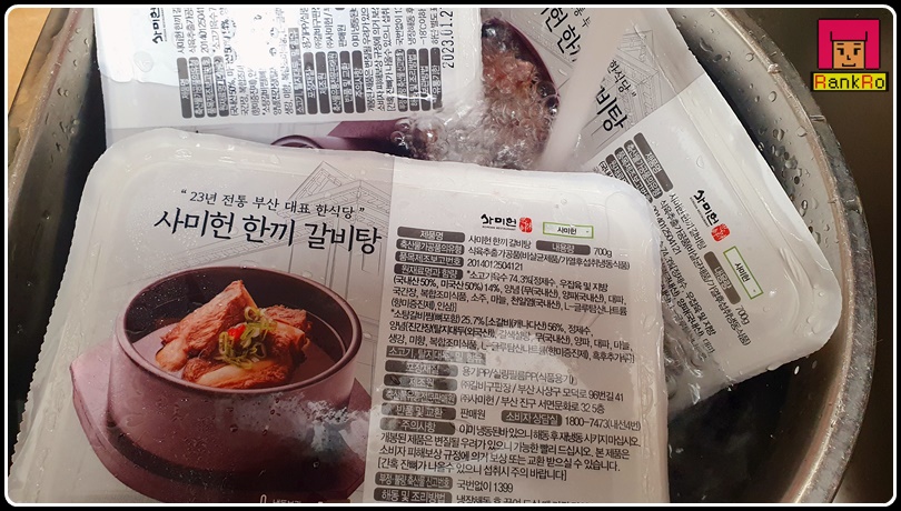 ▼ 사미헌 갈비탕은 냉동식품으로 냉장고에서 해동된 뒤 끓여 먹을 때 가장 맛있는 갈비탕을 먹을 수 있다고 합니다. 냉장보관으로 해동된 뒤 끓여 먹고 싶었지만 택배 온 날 바로 먹기 위해 찬물에 담가 해동시켰습니다. 냉동상태에서 바로 끓여도 맛은 비슷하지만 더 맛있게 드시고 싶다면 냉장고에 보관하시다 끓여 드시는 걸 추천드려요.