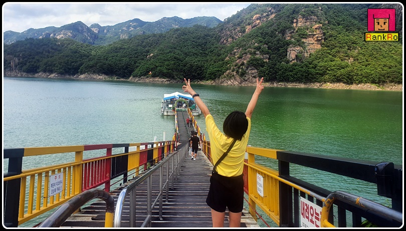 ▼ 장회나루 휴게소를 둘러본 후 안내방송과 함께 선착장으로 내려갔습니다. 선착장 내려가는 길도 한 폭의 그림 같은 충추호의 모습입니다. 단양팔경의 아름다운 절경을 감상하면서 시원한 충주 호수를 충주 유람선을 타고 달려보는 단양 장회나루 선착장입니다.