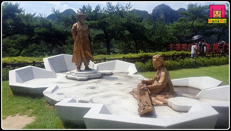 ▼ 충주호관광선 타기 전 장회나루에는 퇴계 이황과 기생 두향의 조형물도 볼 수 있습니다. 퇴계 이황과 두향의 사랑 이야기로 아름다운 절경의 충주호가 보이는 곳에 조형물이 세워져 있었네요.