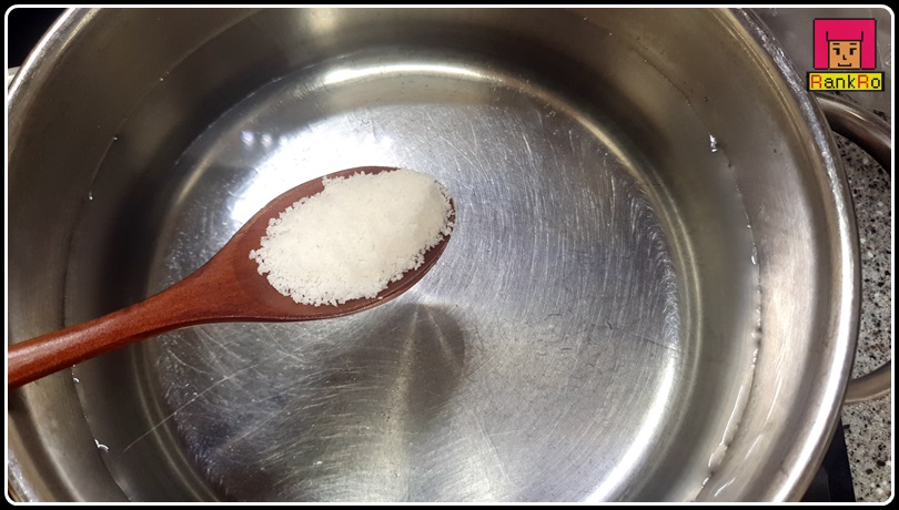 ▼ 냄비에 물 1000ml을 넣어주신 후 소금 3큰술을 넣고 팔팔 끓여 소금물을 만들어 줍니다.