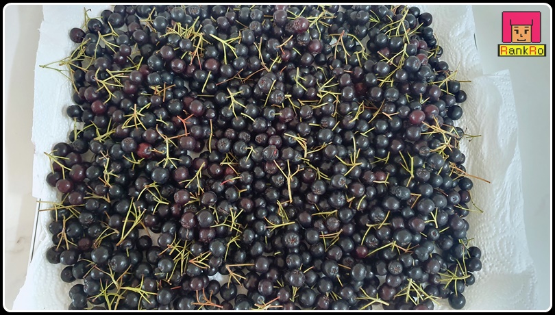 ▼ 채반에서 우선 물기를 제거한 후 쟁반에 키친타올을 깔고 그 위에 아로니아를 올려 물기를 제거해 주었습니다. 조금 더 빨리 아로니아를 건조하기 위해 선풍기를 돌려 물기가 마를 때까지 기다려 제거했습니다. 물기 제거가 다 된 아로니아는 줄기에 달려있는 아로니아 열매를 떼어내주세요.