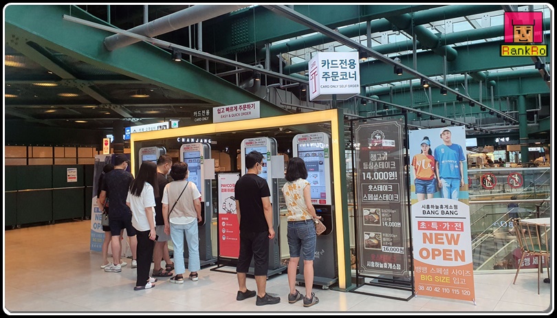▼ 카드 전용 주문 코너로 키오스크를 이용해 다양한 음식을 주문할 수 있습니다. 어딜 가든 키오스크로 주문하는 곳이 많아지면서 편하기도 하지만 키오스트를 처음 접하시는 분들이나 나이 드신 분들은 조금 불편할 것 같다는 생각이 드네요.