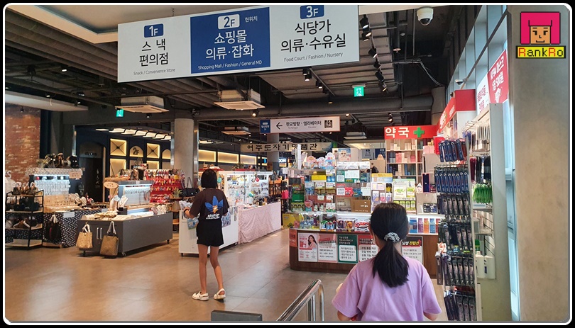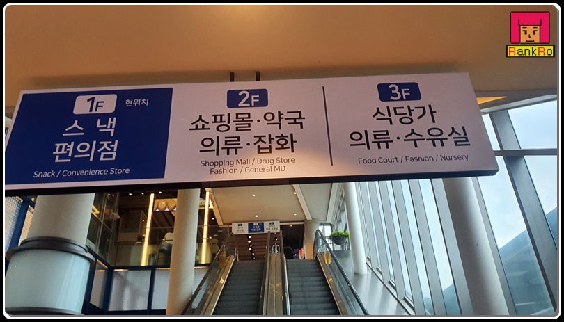 ▼ 시흥하늘휴게소 2층으로 올라가 볼게요. 2층은 일반적인 휴게소의 모습보다는 복합쇼핑몰 형태로 약국, 의류, 잡화가 있는 곳으로 아이들과 함께 쇼핑도 하면서 둘러보기 좋았습니다.