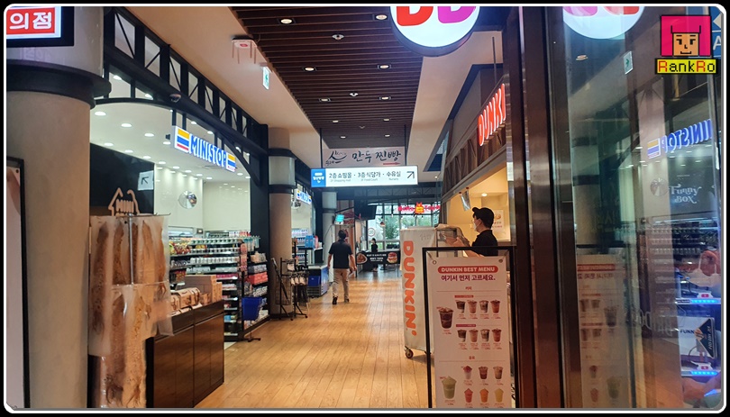 ▼ 1층에는 맘스터치와 던킨도너츠, 미니스톱 편의점의 모습도 볼 수 있습니다.