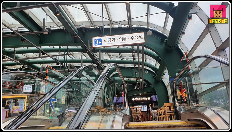 ▼ 3층은 식당가와 의류, 수유실이 있는 푸드코트와 쉼터가 마련되어 있습니다. 3층은 색다른 분위기로 구조물이 바로 보이는 형태의 모습으로 특이하면서 대형 카페 같은 공간의 모습이었습니다.
