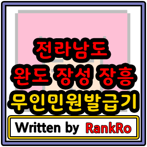 이번 시간에는 전라남도 완도군, 장성군, 장흥군에 위치해 있는 무인민원발급기 현황 목록 리스트에 대하여 알아보도록 하겠습니다. 자료는 Local Data에서 인용하였고 주소를 기준으로 내림차순 정리하였습니다. 지금부터 각 지역별 위치정보에 대하여 알아보도록 하겠습니다.