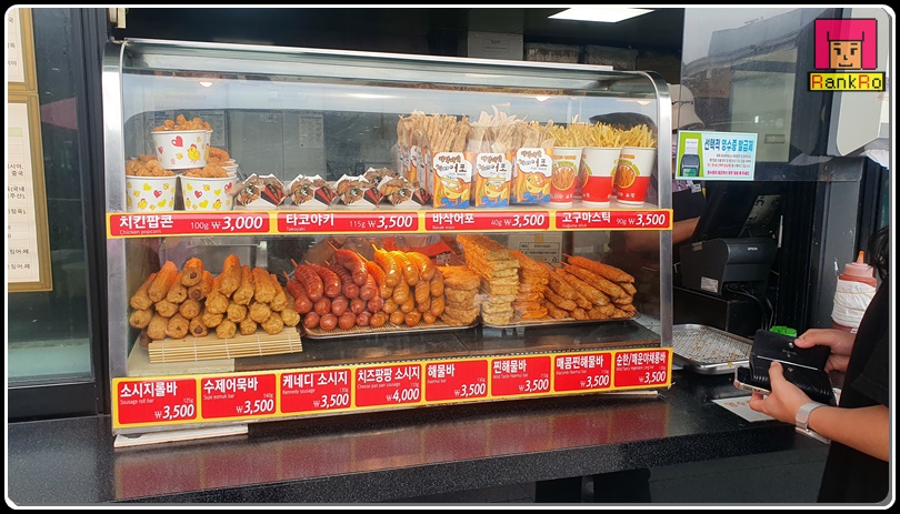 ▼ 쫄깃쫄깃한 핫도그와 탱글탱글한 식감이 좋은 여러 맛의 핫바~고구마튀김, 닭꼬치, 소떡소떡, 소시지, 치킨팝콘, 타코야끼, 다양한 간식 먹거리가 여기 다 있는 것 같네요.