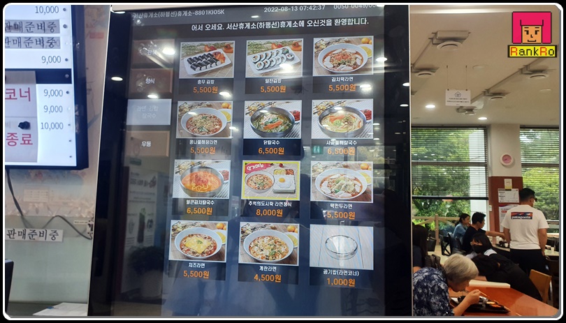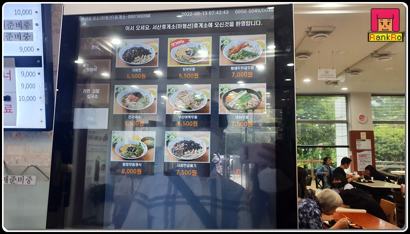 ▼ 이제 든든한 한 끼를 해결하기 위해 서산휴게소 푸드코트 안으로 들어왔습니다. 이미 벌써 많은 분들이 식사하고 있는 모습이었습니다. 우선 자리를 잡고 메뉴를 골라보기로 했습니다.