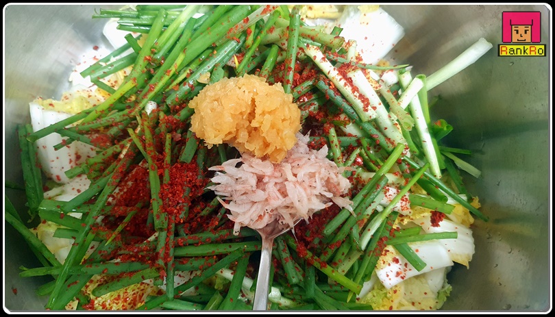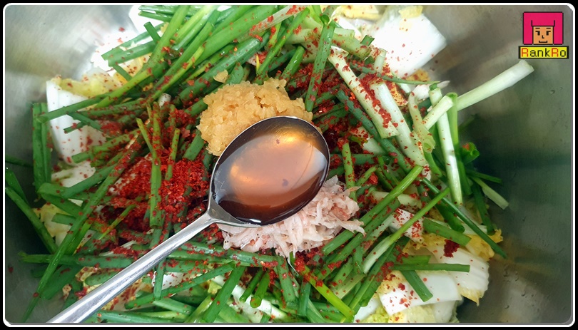 고춧가루 2큰술, 새우젓 1큰술, 액젓 1큰술(까나리 or 멸치액젓), 다진 마늘 1큰술, 어간장 or 설탕 1큰술