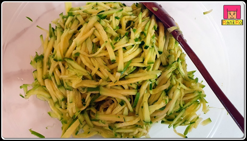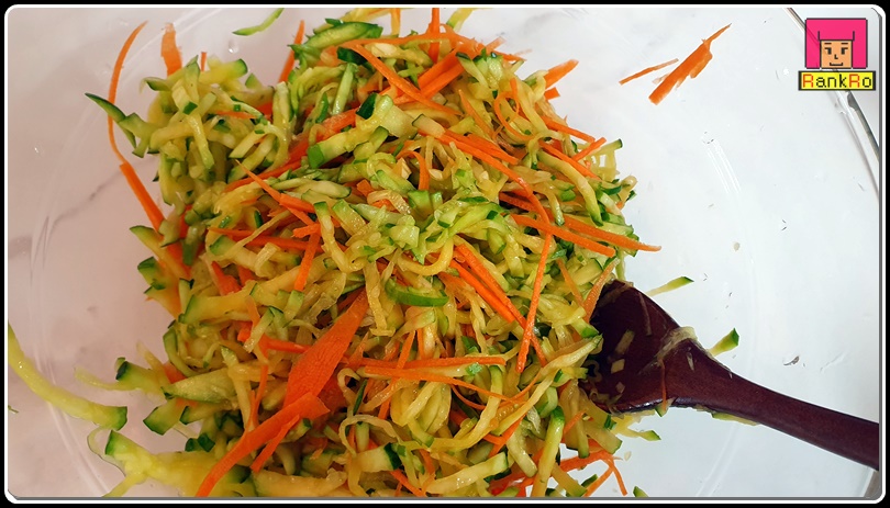 ▼ 애호박채천에 들어가는 애호박과 당근이 잘 섞어주세요.