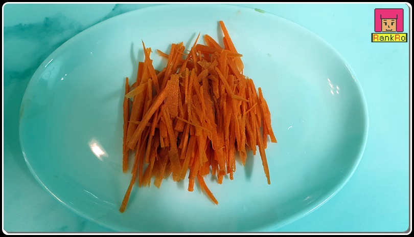 ▼ 애호박채전에 썰어서 준비된 당근을 넣어 주세요.