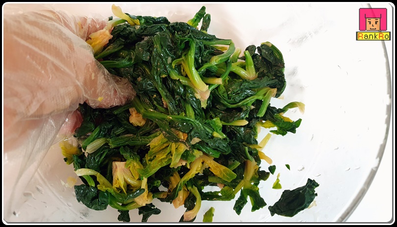 ▼ 여러번 헹궈낸 섬초, 시금치는 물기를 꼭 짜 주세요. 물기를 제거한 섬초나물은 더 아삭한 식감을 느낄 수 있습니다.