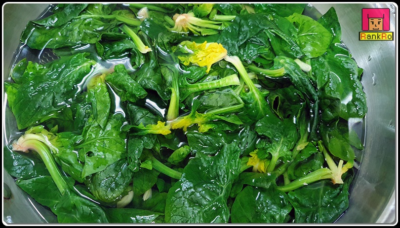 ▼ 섬초는 오랜시간 데칠 필요는 없이 1분 이내 30~40초 사이로 데쳐 주시면 됩니다. 시금치상태나 시금치의 억 센 정도에 따라 데치는 시간은 달라지며 연한 섬초나 시금치는 15초 정도 데쳐 주면 됩니다.