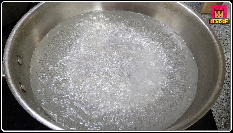 ▼ 시금치무침 만드는법으로 넓은냄비에 물을 끓여 주세요. 물이 끓기 시작하면 소금 1큰술을 넣어 주세요. 소금을 넣어 주면 녹황색채소인 시금치, 섬초 색이 더 진한 초록색으로 나타납니다.