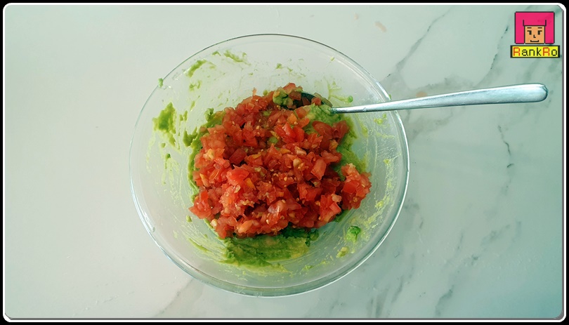 ▼ 아보카도 먹는 법으로 아보카도 과카몰리에 잘라서 준비된 방울토마토를 넣어 주세요.