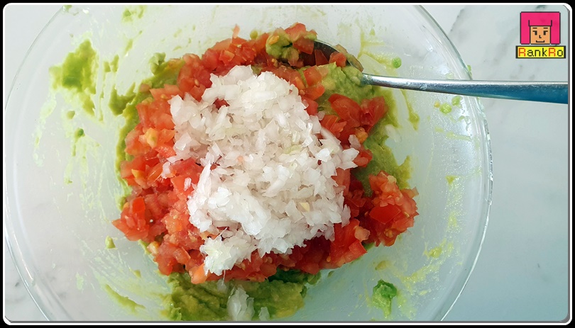 ▼ 아보카도 과카몰리 만드는 법에 들어가는 물기가 제거된 방울토마토와 양파는 잘게 썰어 주세요.