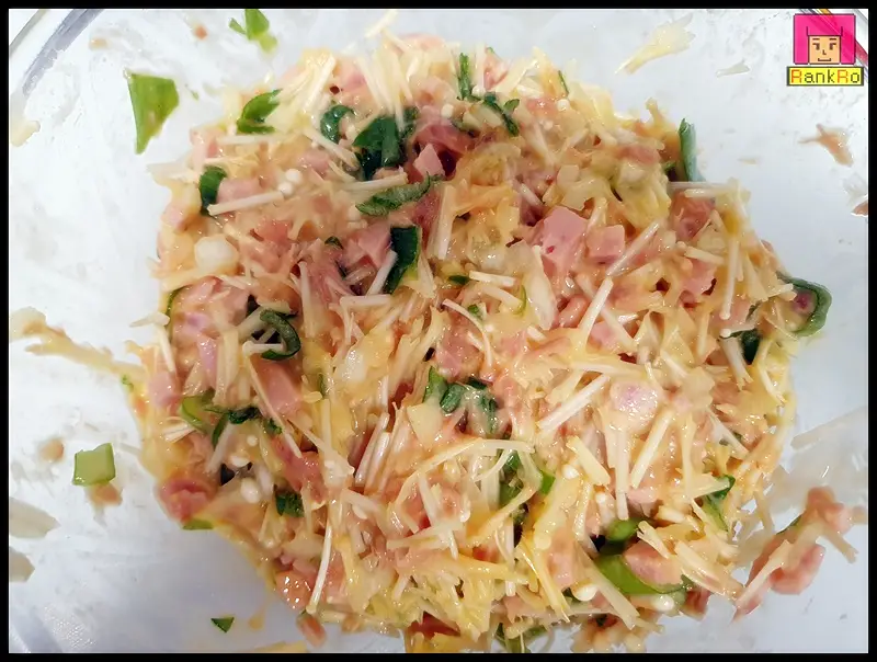 ▼ 모든 재료와 함께 가볍게 섞어 적당한 농도를 맞춰 준비해 주세요. 저는 여기에 밑간양념으로 어간장(멸치액젓, 까나리액젓) 1/2큰술을 넣었습니다. 감칠맛 나는 액젓이나 소금을 조금 넣어 주시면 됩니다.