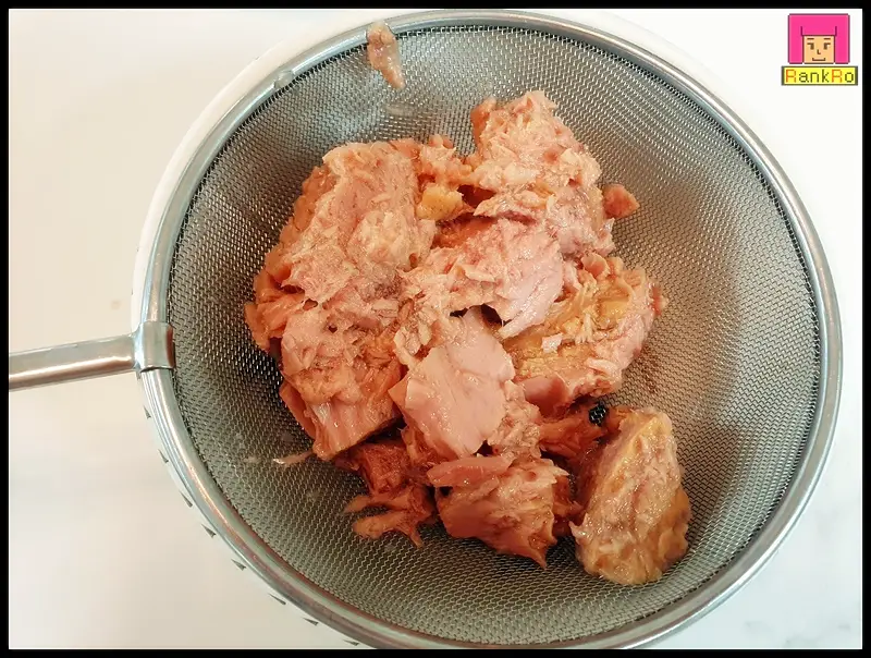 ▼ 참치전 만드는법에 들어가는 참치는 체에 걸러 참치캔 수분과 기름을 제거 해 주세요. 참치기름과 수분이 참치전에 많이 들어가면 참치전 반죽이 묽어져 참치전 모양을 잡기가 어려울 수 있으니 참치기름과 수분을 적당하게 빼 주세요.