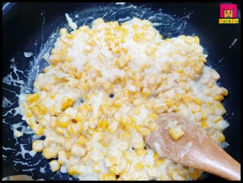 ▼ 강불과 중불사이 화력으로 잘 뒤적거리면서 충분하게 볶아주어야 고소함이 가득하면서 달콤한 맛이 진하게 올라와 맛있는 콘치즈만드는법으로 만들 수 있습니다.