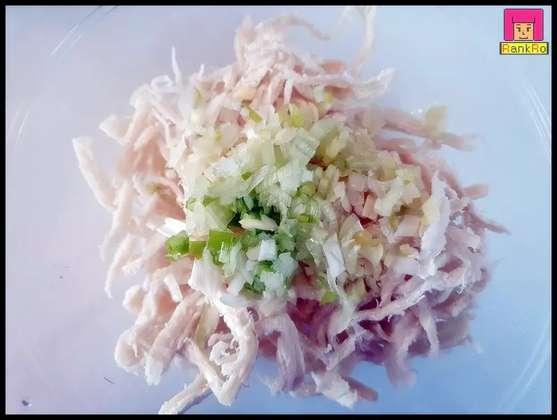 ▼ 진미채무침에 잘게 잘라놓은 대파를 넣어 주세요.