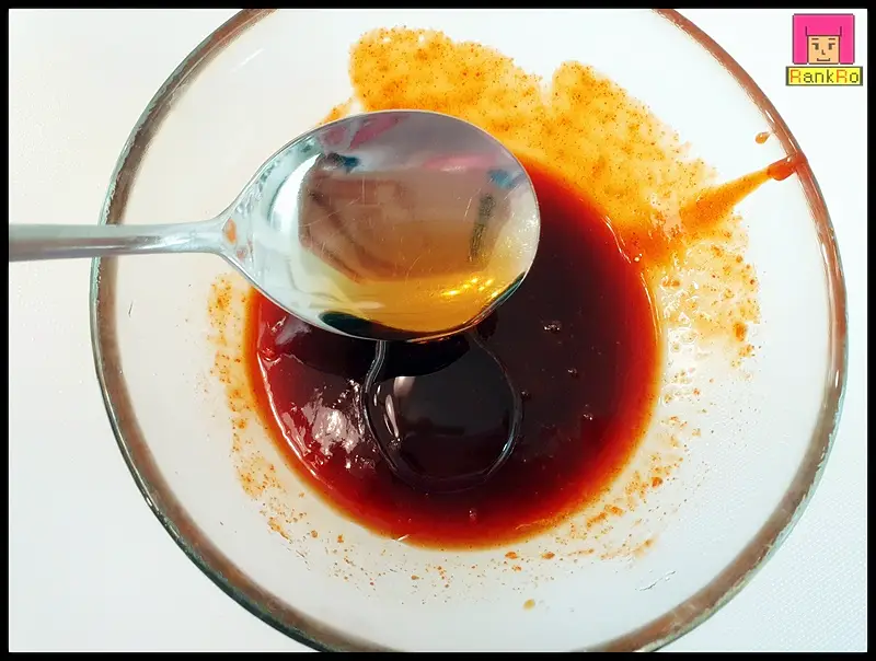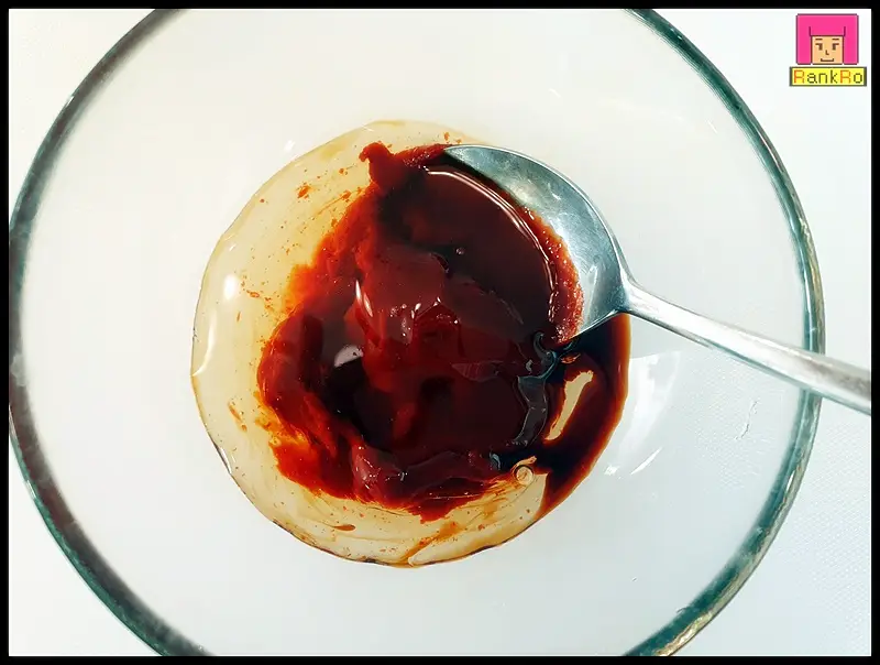 ▼ 진미채무침 양념장을 만들어 주세요. 고추장 2큰술, 간장 1큰술, 올리고당 or 물엿 5큰술, 참기름 1큰술을 넣고 오징어채무침 양념장을 잘 섞어 만들어 주세요.