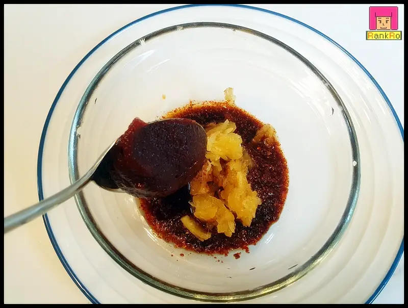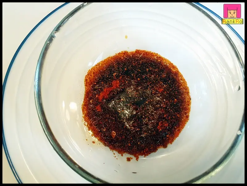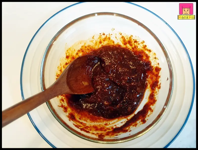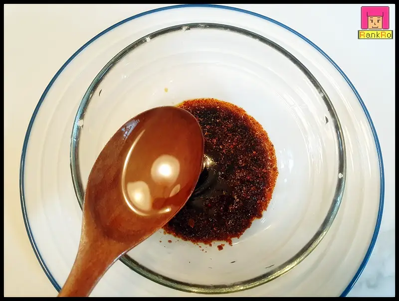 ▼ 무조림 양념장을 만들어주세요. 고춧가루 2큰술, 진간장 3큰술, 미림 1큰술, 다진 마늘 1큰술, 고추장 1큰술을 넣고 잘 섞어 준비해 주세요. 지금이 제철인 무는 달달해 설탕은 들어가지 않아요.