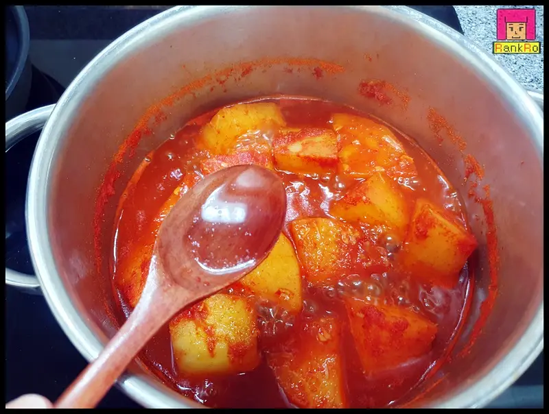 ▼ 무조림레시피 양념장을 넣고 뚜껑을 덮고 센 불에 끓여 주세요.