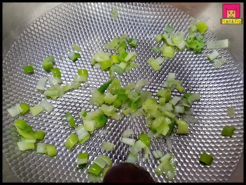 ▼ 예열된 팬에 식용유 2큰술을 넣고 준비해 놓은 대파를 넣어 주세요.