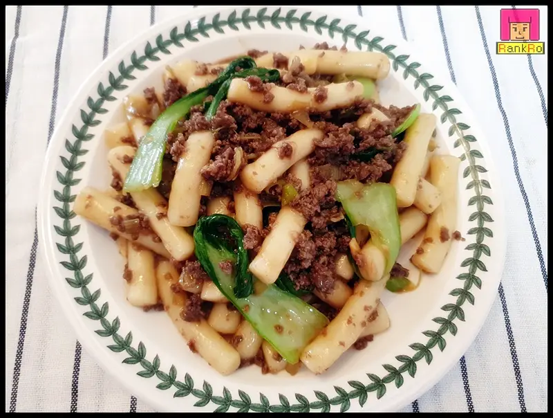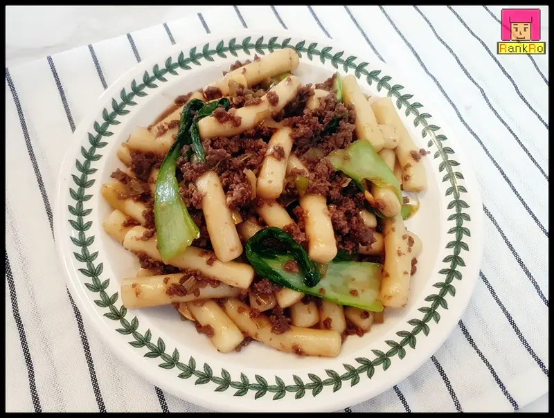 떡볶이떡 300g, 소고기다짐육 150g, 대파 1/2개, 청경채 1개, 꿀 or 올리고당 1/2큰술