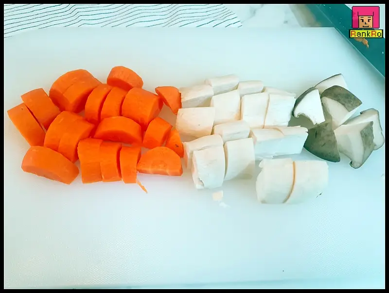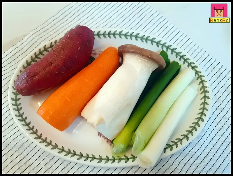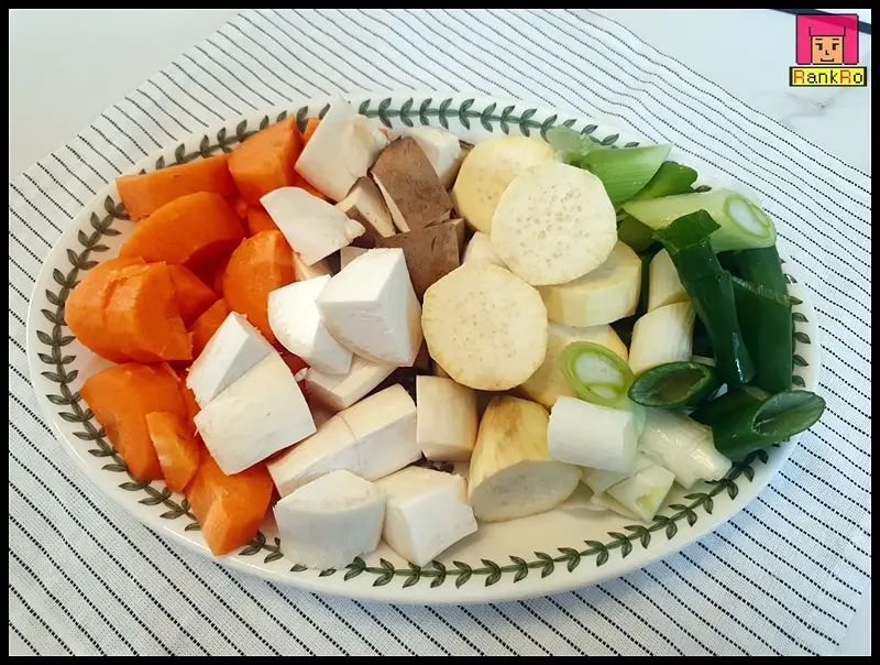▼ 대파는 어슷 썰기로 당근, 버섯, 고구마, 양파는 먹기 좋은 크기로 잘라 준비해 주세요.